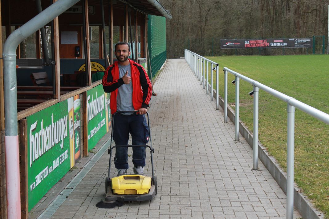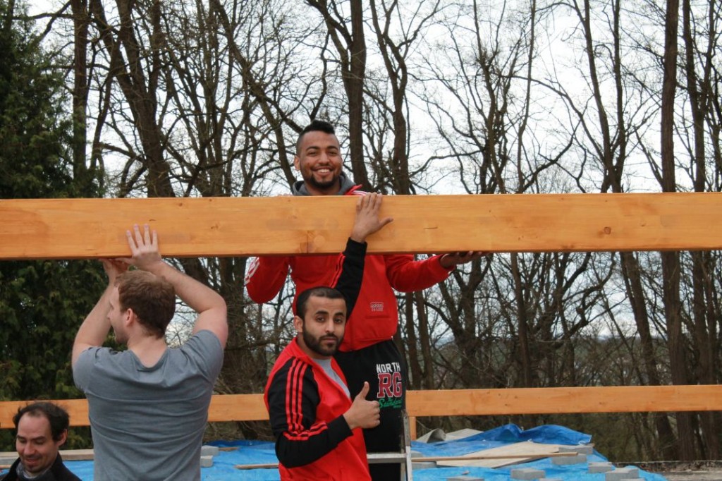 Nachdem in der vergangenen Woche die großen Balken gestrichen wurden, konnte heute das Grundgerüst – mit vereinten Kräften – errichtet werden. Das Streichen der Konterlattung sowie das Herrichten des Sportplatzes und des Umfeldes für das morgige Spiel waren weitere Aufgaben des heutigen Arbeitseinsatzes, an dem sich insgesamt 12 Personen beteiligten.